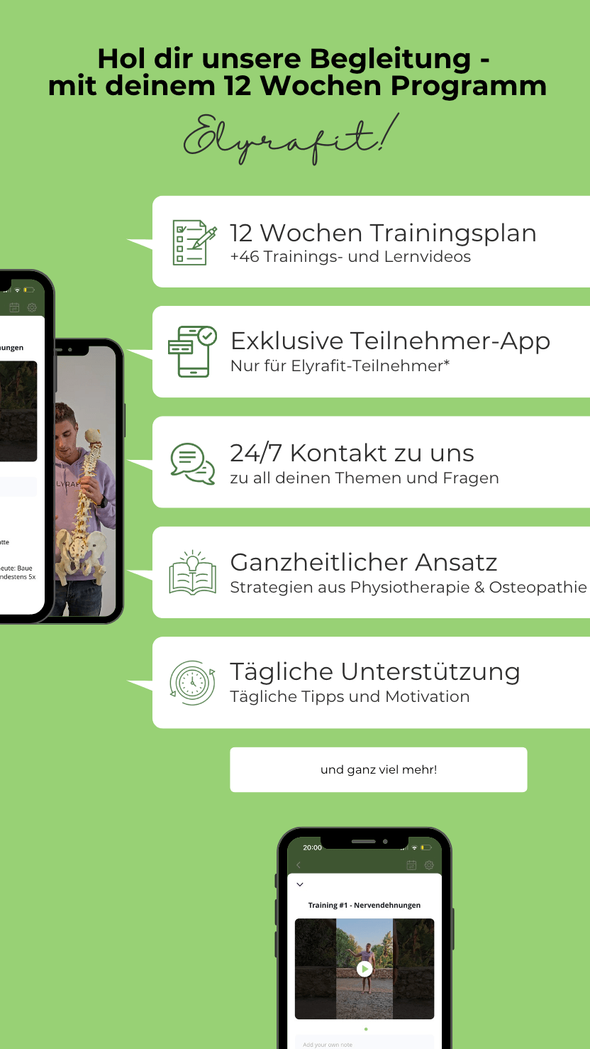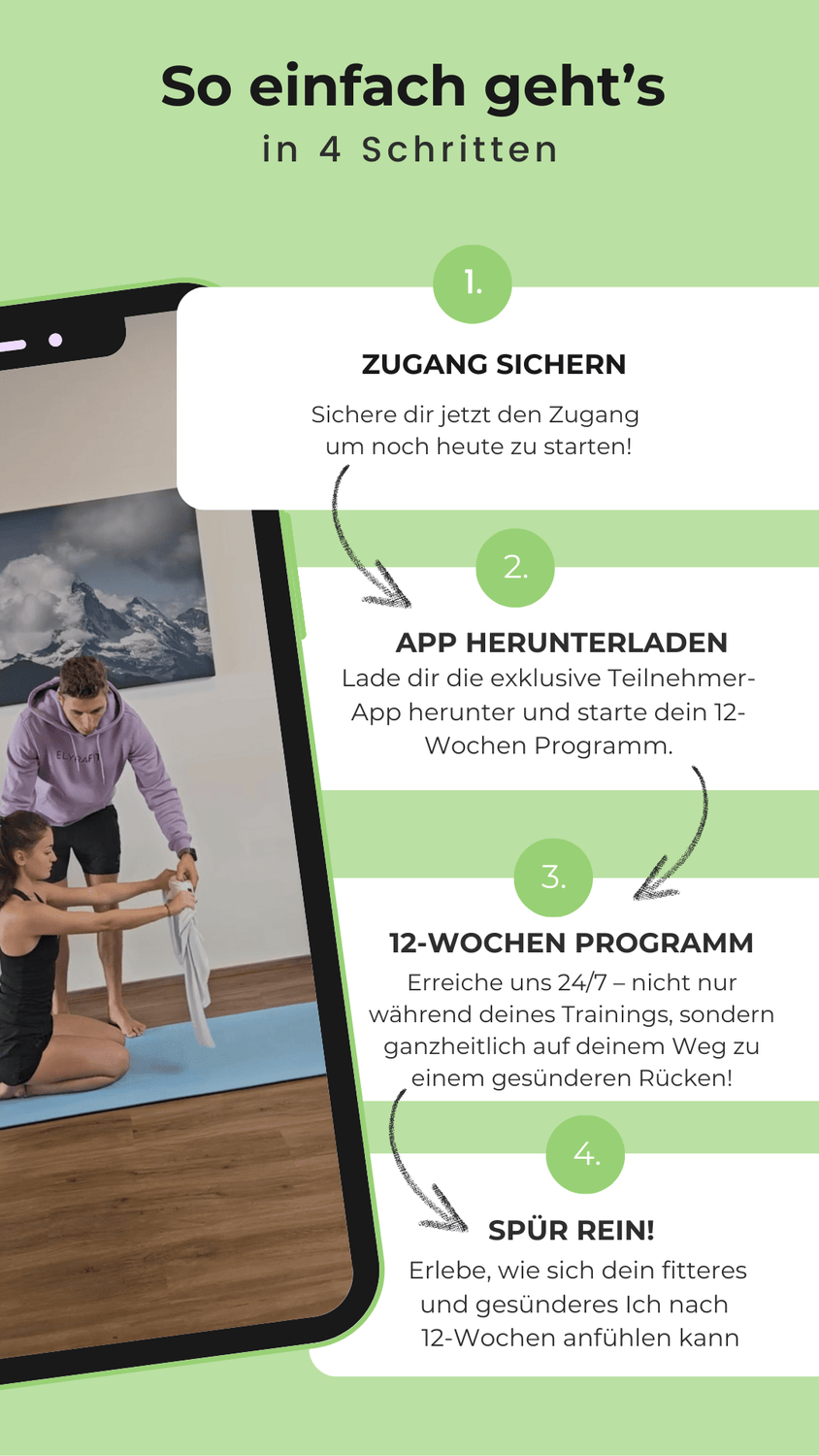 ✅ In unserem 12 Wochen-Programm haben wir all mein Wissen aus 9 Jahren Physiotherapie und Osteopathie vereint - kompakt, verständlich und über die App jederzeit verfügbar.